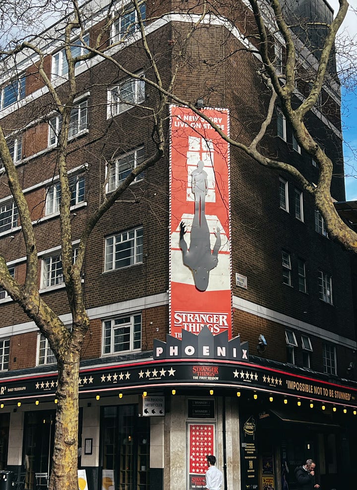 Dan treated me to an incredible day out for my 40th last month in London. We had lunch at Egg Slut, wandered around the city, had coffee, visited the largest bookshop in Europe, then it was time for dinner (at Dishoom) and a show (Stranger Things: The First Shadow).
